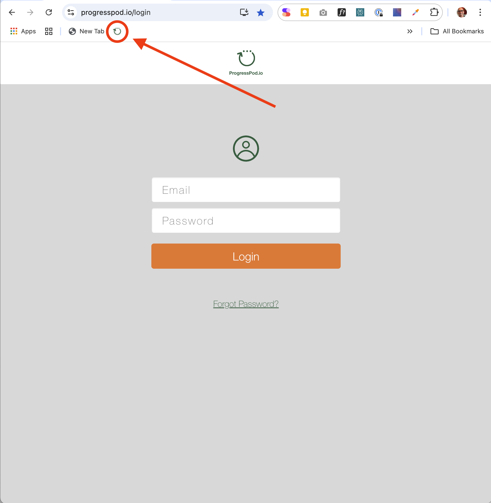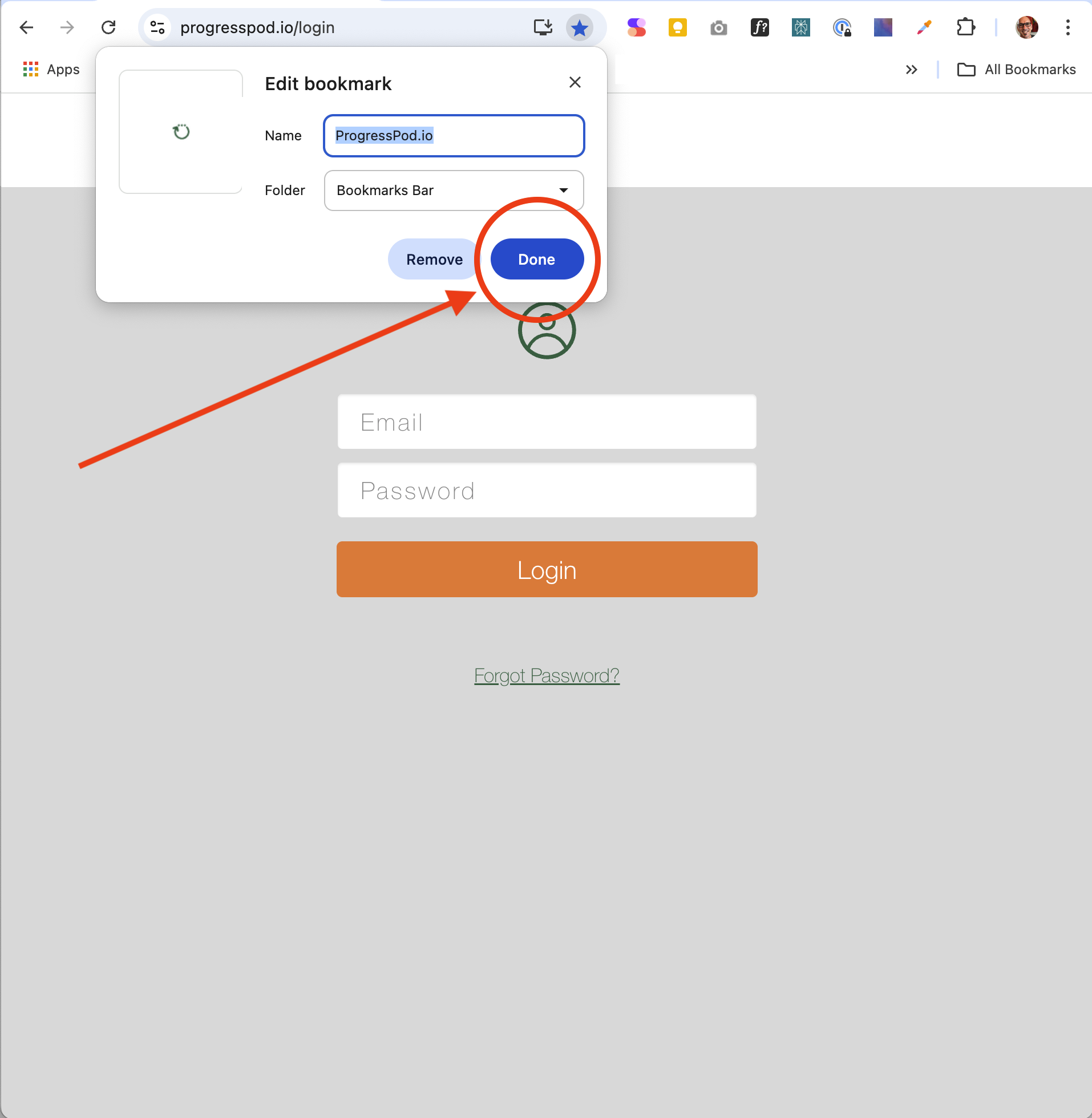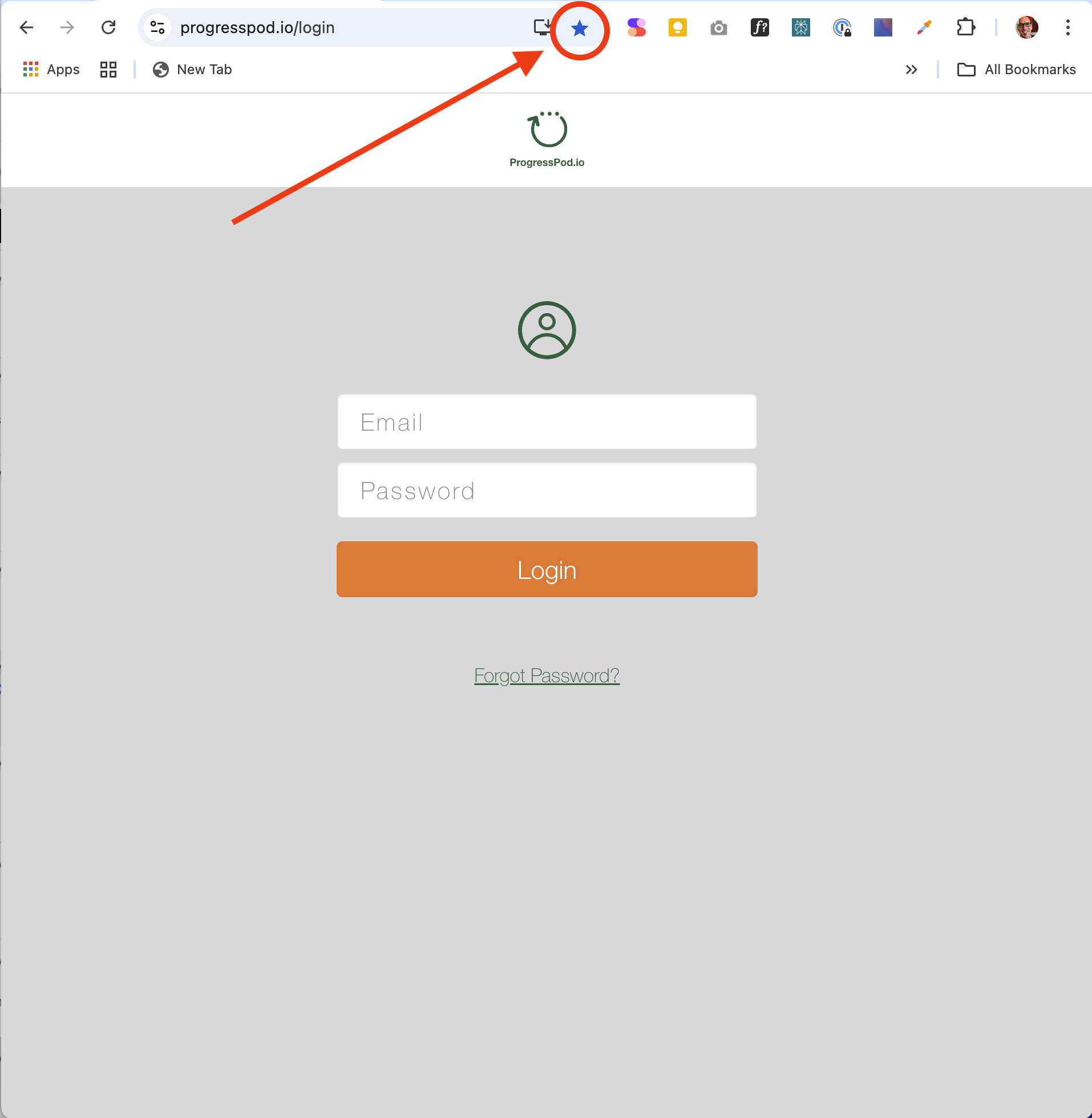 1. Go to https://ProgressPod.io/login and click the blue star at the end of the URL bar.
